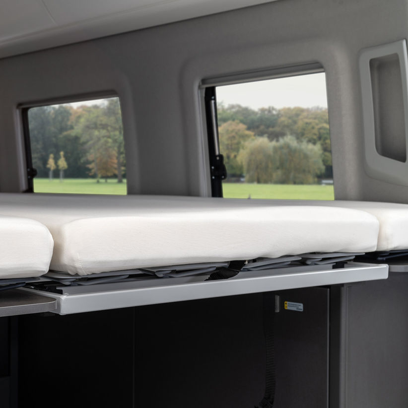 Die Spannbettlaken besteht aus 3 Teilen und wurde so konzipiert, dass ein Hochklappen des Mittelteils des Heckbetts zur Stauraumvergrößerung problemlos möglich bleibt.